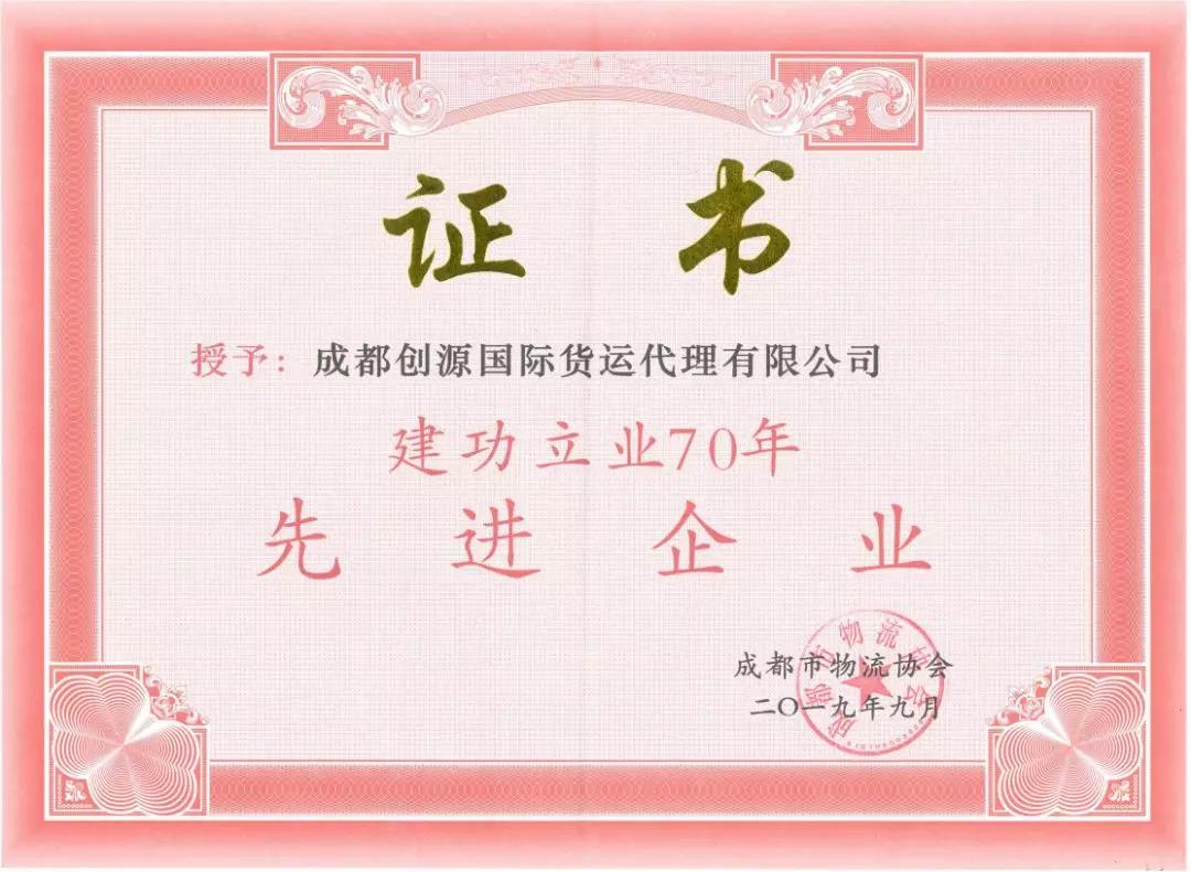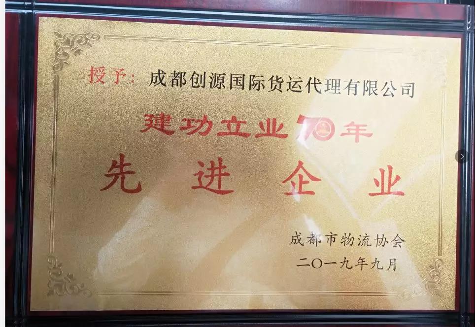 成都創(chuàng)源國(guó)際貨運(yùn)代理有限公司 榮獲“建功立業(yè)70年先進(jìn)企業(yè)獎(jiǎng)”