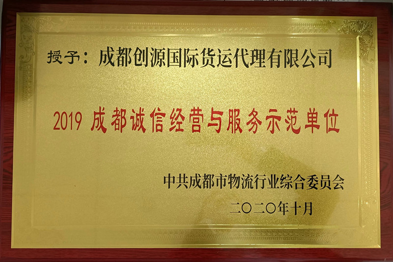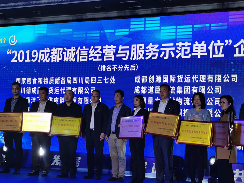 成都創(chuàng)源貨運公司榮獲“2019成都誠信經(jīng)營與服務(wù)示范單位”獎項,并登臺簽署《成都現(xiàn)代物流行業(yè)誠信建設(shè)準(zhǔn)則》。