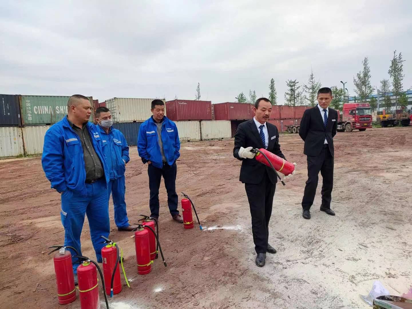 先由受過培訓(xùn)的同事講解消防知識和滅火器的使用方法:右手拔下保險銷,一只手抓住膠皮噴管前端,另一只手抓住提柄,跑到距火源4-5米處,站在火源上風(fēng)方向,右手用力一握壓把,干粉即噴出,然后對準(zhǔn)火源根部橫掃。適用范圍:固體、液體、氣體火災(zāi)。熟悉了消防器材再組織大家親自操作使用滅火器進(jìn)行滅火演練。