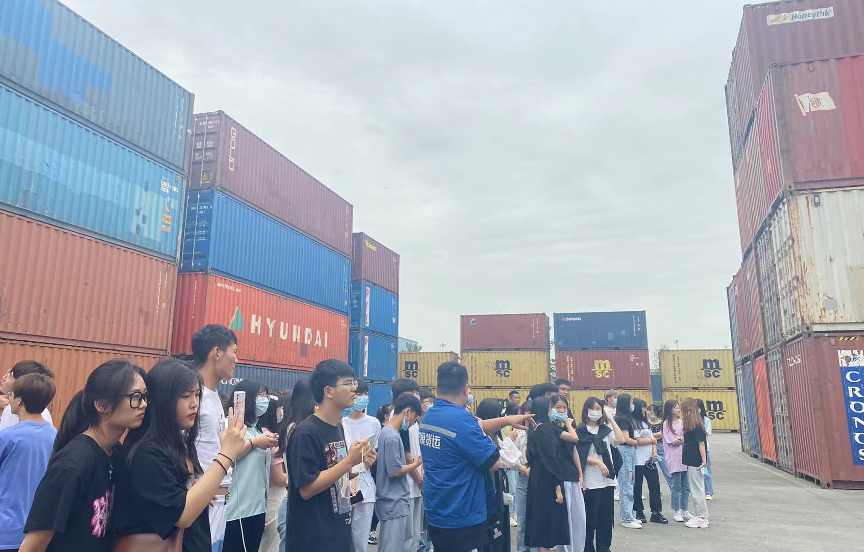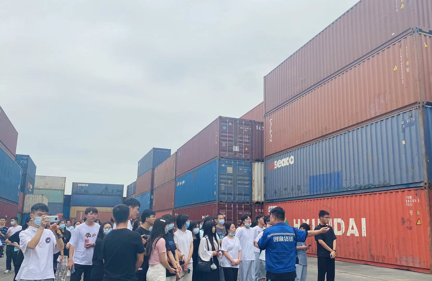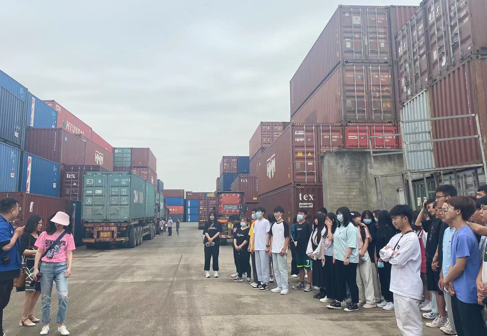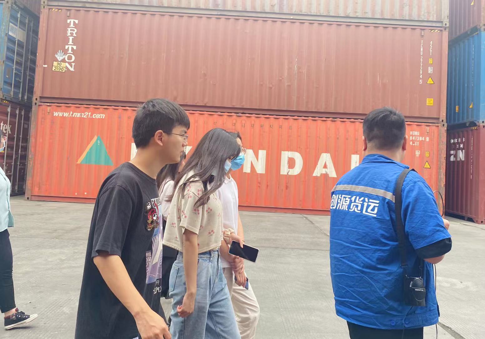 此次活動(dòng)由創(chuàng)源堆場(chǎng)負(fù)責(zé)人葉鵬主管帶領(lǐng)師生參觀,講解。活動(dòng)開始由葉鵬主管先為老師和同學(xué)們講解安全注意事項(xiàng)讓大家在參觀過程中避免安全事故的發(fā)生,其次給大家大致說了創(chuàng)源堆場(chǎng)的基本信息,讓大家在參觀前能先了解創(chuàng)源,了解創(chuàng)源堆場(chǎng)。帶大家近距離觀看集裝箱,并教同學(xué)們?nèi)绾未蜷_集裝箱門,講解了有關(guān)集裝箱表面文字的意義所在,講解堆場(chǎng)的倉儲(chǔ)設(shè)施、作業(yè)流程、集裝箱知識(shí)點(diǎn),同學(xué)們也很好學(xué)都在積極提問、拿出手機(jī)拍照記錄還有拿出筆記本認(rèn)真記下知識(shí)點(diǎn)的。