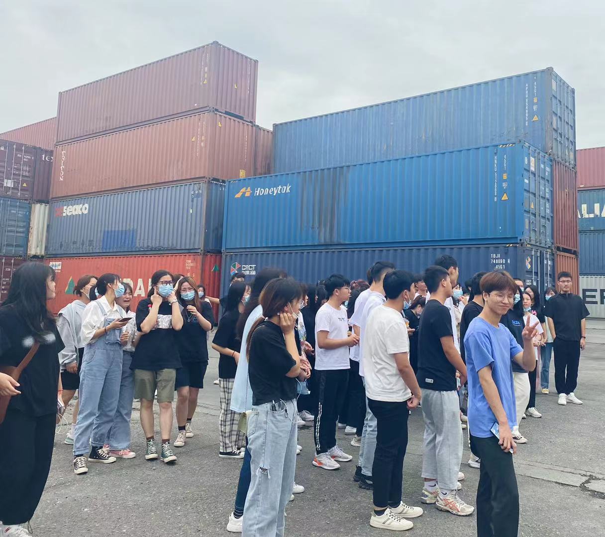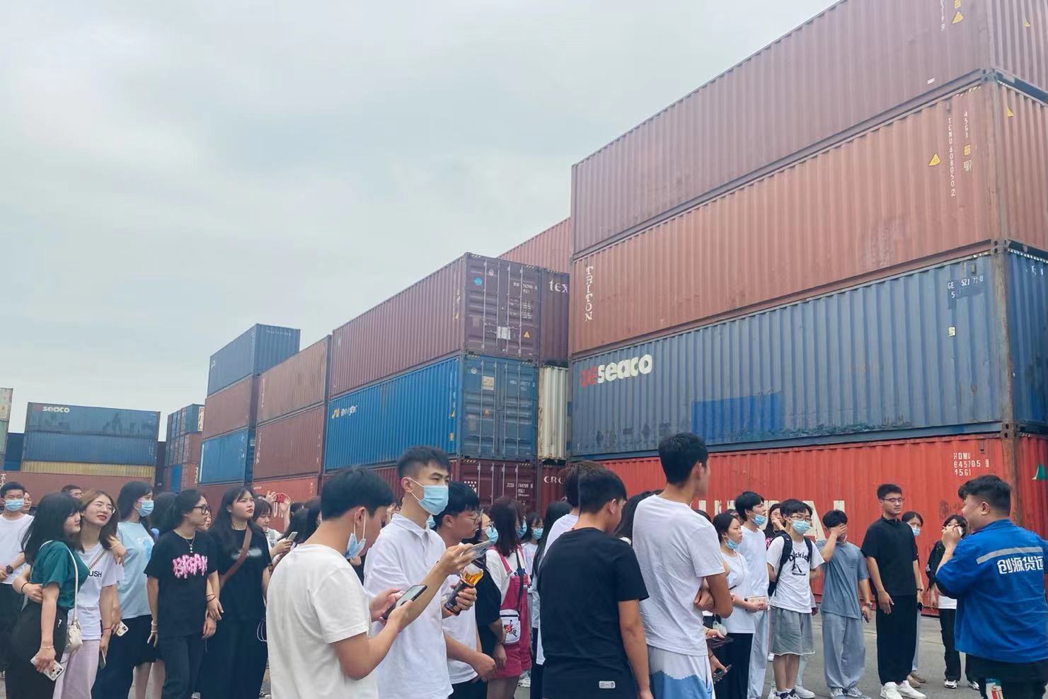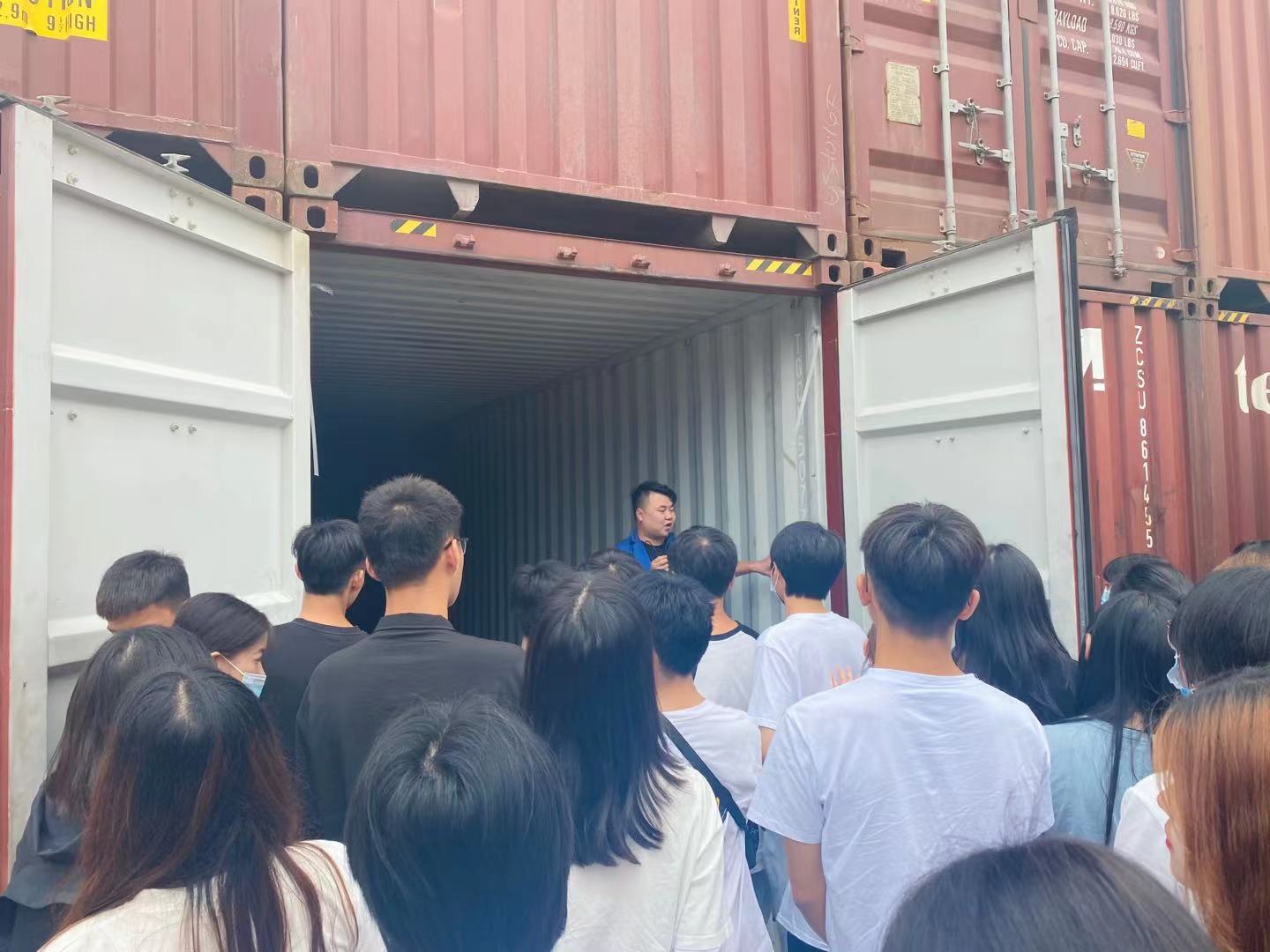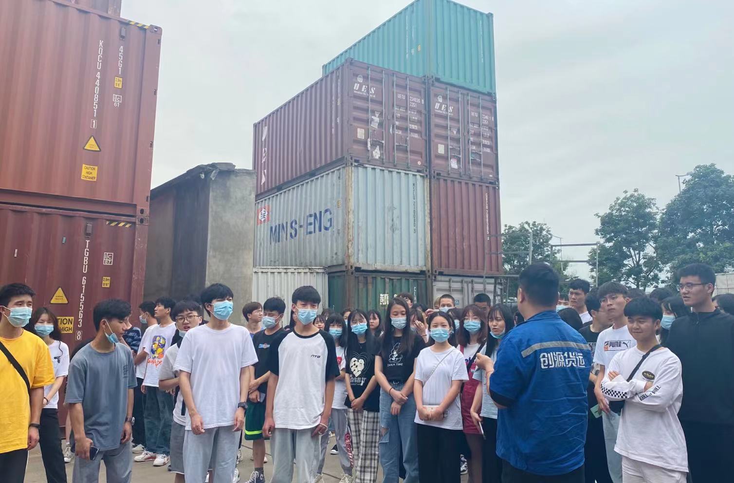此次活動(dòng)由創(chuàng)源堆場(chǎng)負(fù)責(zé)人葉鵬主管帶領(lǐng)師生參觀,講解。活動(dòng)開始由葉鵬主管先為老師和同學(xué)們講解安全注意事項(xiàng)讓大家在參觀過程中避免安全事故的發(fā)生,其次給大家大致說了創(chuàng)源堆場(chǎng)的基本信息,讓大家在參觀前能先了解創(chuàng)源,了解創(chuàng)源堆場(chǎng)。帶大家近距離觀看集裝箱,并教同學(xué)們?nèi)绾未蜷_集裝箱門,講解了有關(guān)集裝箱表面文字的意義所在,講解堆場(chǎng)的倉儲(chǔ)設(shè)施、作業(yè)流程、集裝箱知識(shí)點(diǎn),同學(xué)們也很好學(xué)都在積極提問、拿出手機(jī)拍照記錄還有拿出筆記本認(rèn)真記下知識(shí)點(diǎn)的。