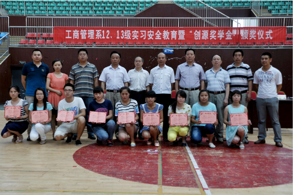 2014年7月28日下午,四川工業(yè)管理職業(yè)學院舉行了“創(chuàng)源獎學金”頒獎典禮,學院常務副院長游永恒、成都創(chuàng)源國際貨運代理有限公司陳遠培、明德教育集團副總經(jīng)理何義興、學院副院長牟一零、吳仕緒以及學院學生處、教務處、就業(yè)中心領導為獲獎的徐小林等9名同學頒發(fā)獎學金。