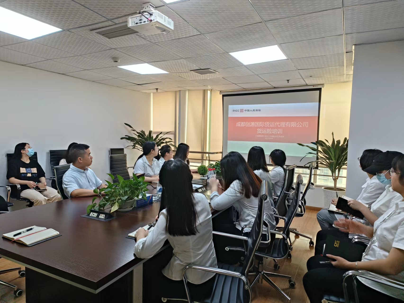 2022年8月26日上午, 人保四川分公司國際部黃河、譚明輔受邀來到創(chuàng)源貨運公司,為創(chuàng)源操作團隊進行貨物運輸保險承保事務(wù)培訓(xùn),針對創(chuàng)源公司在運輸投保過程中遇到的問題現(xiàn)場答疑。本次培訓(xùn)由人保四川分公司國際部譚明輔主講,現(xiàn)場分析公司在運輸過程中出現(xiàn)過的保險理賠案例,詳細解說常規(guī)投保的規(guī)范性與預(yù)投保的重要性,貨運風(fēng)險、防范措施、糾正投保概念、講解貨運險理賠程序所需資料等專業(yè)知識,分享海事\汽運出險理賠案例,提高操作過程中的風(fēng)險防范與管控意識。
