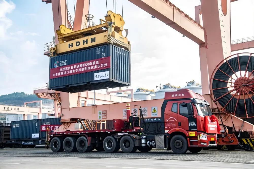 2024年1月4日上午,裝載40個集裝箱約1000噸糧食的西部陸海新通道中老鐵路首趟保稅進(jìn)口糧食直達(dá)專列(老撾孟賽—重慶萬州)抵達(dá)重慶萬州新田港站,這也是萬州綜保區(qū)首批進(jìn)口糧食入?yún)^(qū)。此趟專列于2023年12月23日從老撾孟賽站裝車發(fā)運,通過一體化報關(guān)模式從云南磨憨口岸進(jìn)入國內(nèi),而后直達(dá)重慶萬州新田港站。