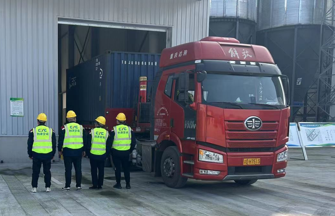 創(chuàng)源物流集團(tuán)下屬子公司重慶江之源物流公司、重慶江合源物流有限公司承接本次班列到達(dá)裝卸作業(yè)及糧食集裝箱公路轉(zhuǎn)運任務(wù).