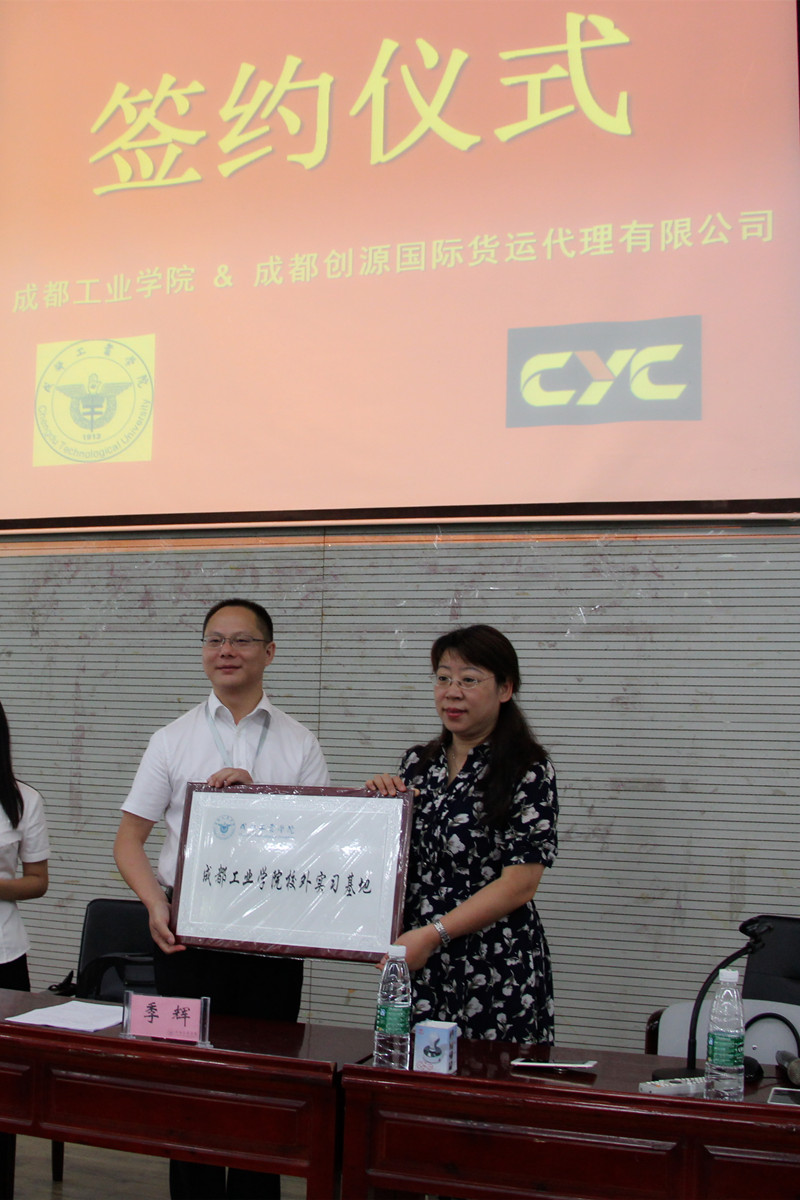 6月20日上午,成都創(chuàng)源國際貨運代理有限公司與成都工業(yè)學(xué)院經(jīng)濟(jì)與管理學(xué)院校企合作簽約儀式在學(xué)校匯報廳舉行。 創(chuàng)源貨運公司總經(jīng)理劉渝源、行政及人力資源主管張楊、學(xué)院院長季輝、黨總支書記柳會、副院長唐心智、物流教研室主任宋心宇、工業(yè)學(xué)院2013級畢業(yè)生創(chuàng)源公司員工許夕平、胡安祥及經(jīng)管學(xué)院大三學(xué)生共同參加簽約儀式。