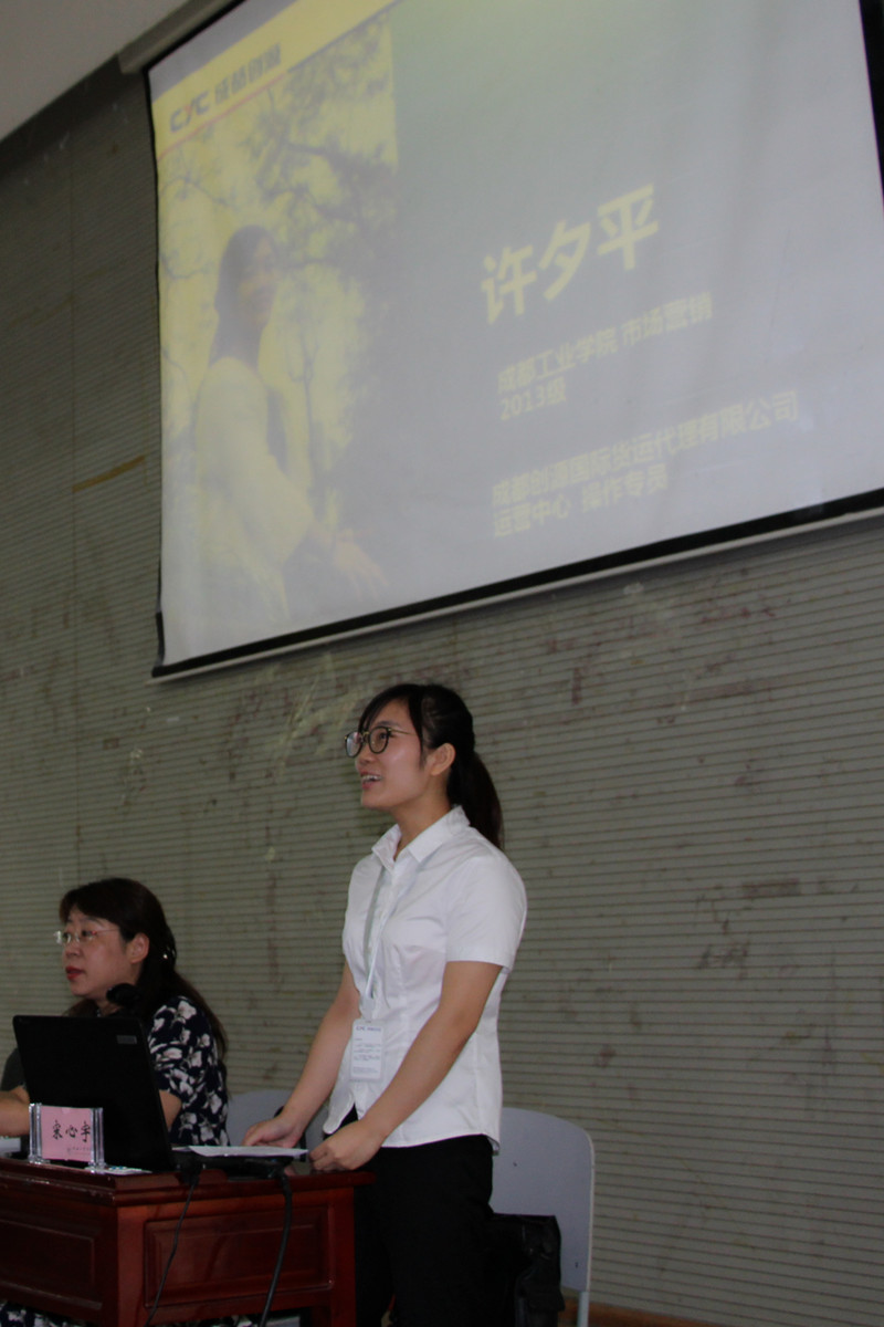 經(jīng)管學(xué)院季院長與創(chuàng)源公司劉總先后發(fā)言,共同表示愿通過此次合作,實現(xiàn)校企資源優(yōu)化,共同培養(yǎng)社會所需人才,提供學(xué)生就業(yè)擇業(yè)和崗位實踐等需求。隨后,由創(chuàng)源公司行政人力資源張主管進(jìn)行企業(yè)文化與招聘宣講,現(xiàn)場解答學(xué)生就業(yè)疑問。工業(yè)學(xué)院2013級優(yōu)秀畢業(yè)生許夕平、胡安祥現(xiàn)就職于創(chuàng)源公司操作部和業(yè)務(wù)部,分別在會上與學(xué)弟學(xué)妹們進(jìn)行工作感悟分享。