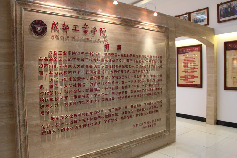 (校方、企業(yè)負責人 合影于成都工業(yè)學院陳毅紀念園門前)