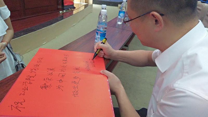 (大會開始前,劉總在為“物流協會”的成立,寫下賀詞)