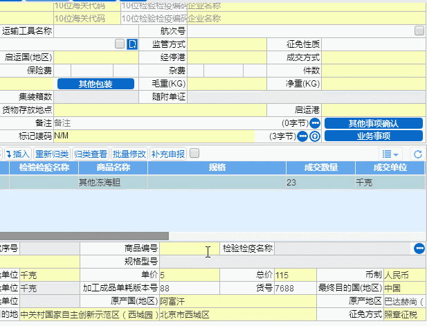 A:8月1日正式版本上,錄入10位商品編碼后,系統(tǒng)自動(dòng)匹配并顯示該商品對(duì)應(yīng)的檢驗(yàn)檢疫名稱,如果一個(gè)10位編碼對(duì)應(yīng)多個(gè)3位檢驗(yàn)檢疫附加碼及名稱,需自行選擇一個(gè),系統(tǒng)保存3位檢驗(yàn)檢疫編碼。